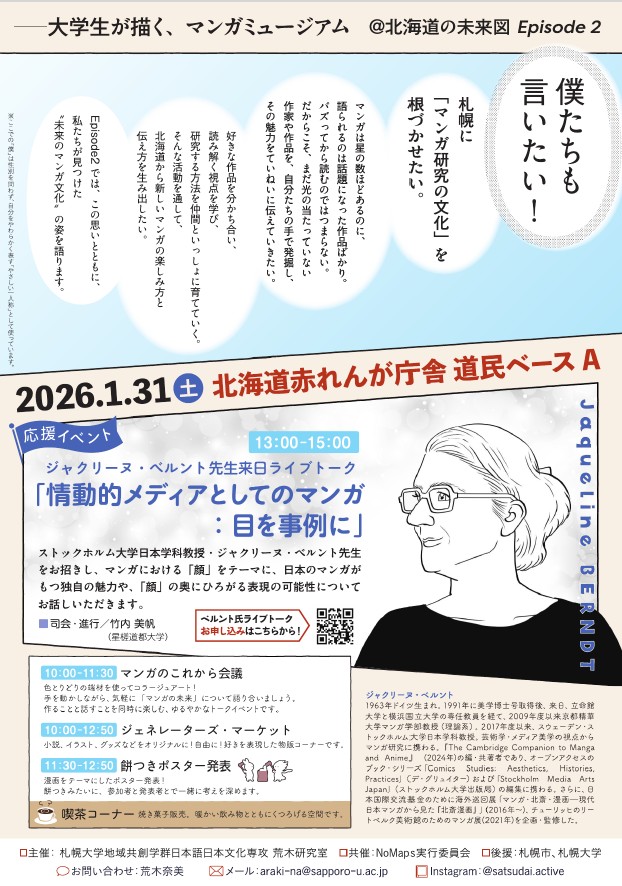 【2026/1/31】ベルント先生来日記念ライブトーク「情動的メディアとしてのマンガ」(@北海道赤れんが庁舎)に参加します